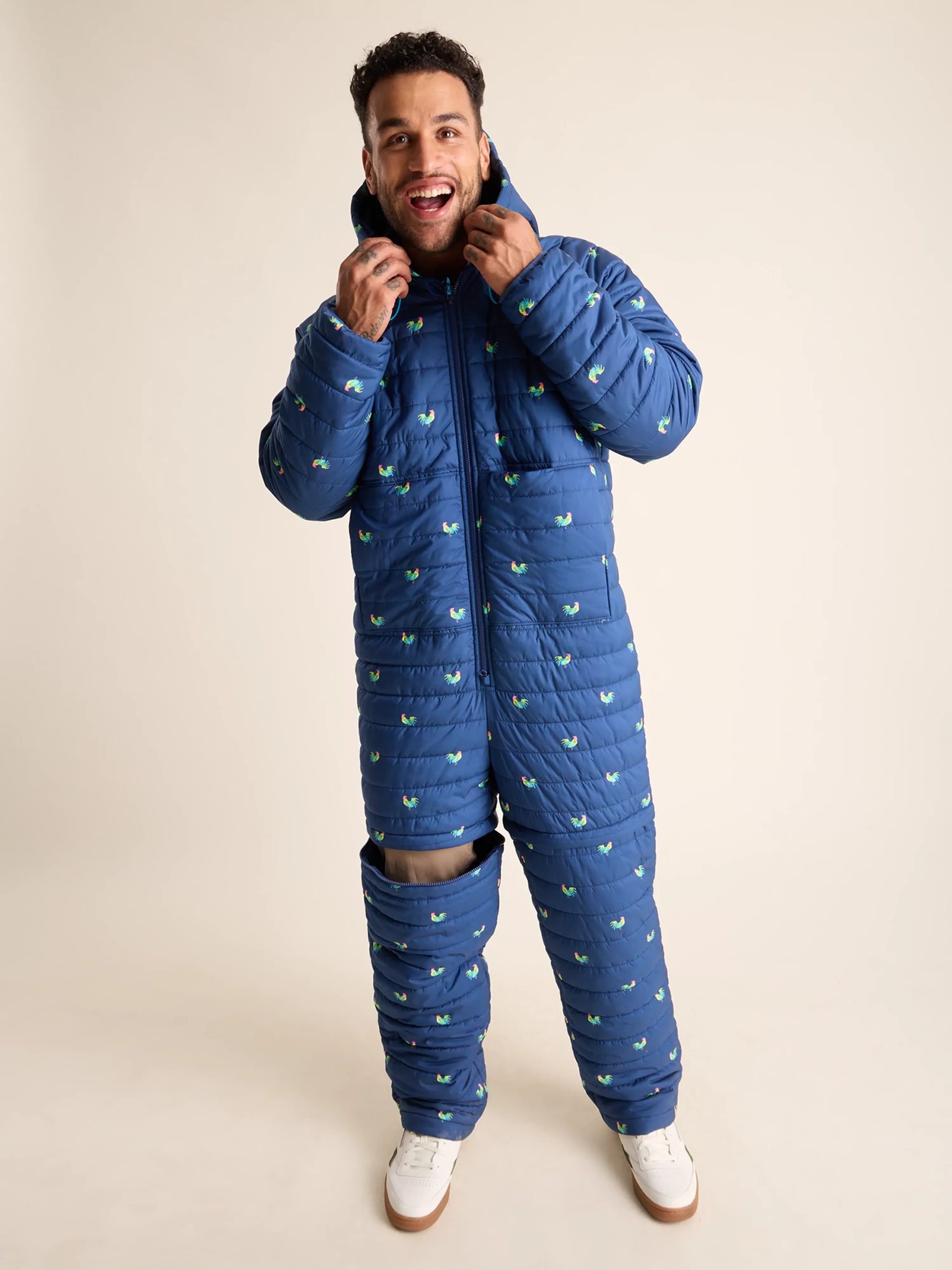 The Puffer Chubbsie is here to swaddle you in warmth, and become your go-to style for snowy tailgates, frigid camping adventures, backyard snowball fights, and more. Designed to be worn over your clothes as an outer layer, this water resistant winter novelty is able to keep you warm in temperatures as low as 21掳 F and zip-off into shorts when things get a bit too toasty.