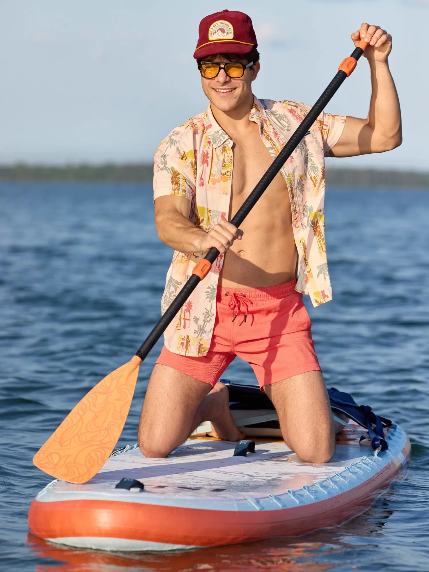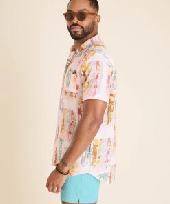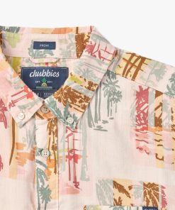 Chubbies Men’s Tops The Hip To Be Square- Tan | Off White Squares & Palms